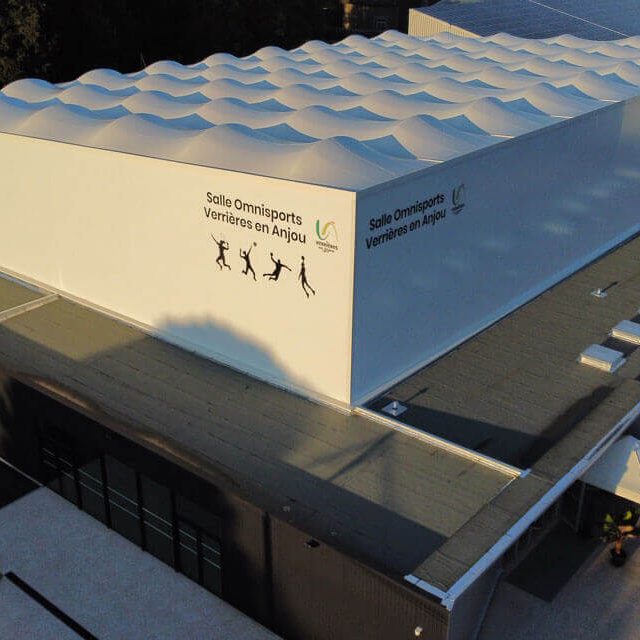 Nous nous inspirerons de la salle omnisports réalisée à Verrières-en-Anjou sensiblement identique en surface à R. Boux. Sa structure en toile tendue est faite d’une membrane textile translucide qui donne à la salle une luminosité qui autorisera des économies substantielles d’éclairage (donc soutien des fonds européens des projets d’équipements sportifs s’inscrivant dans une logique environnementale, d’économies d’énergies).